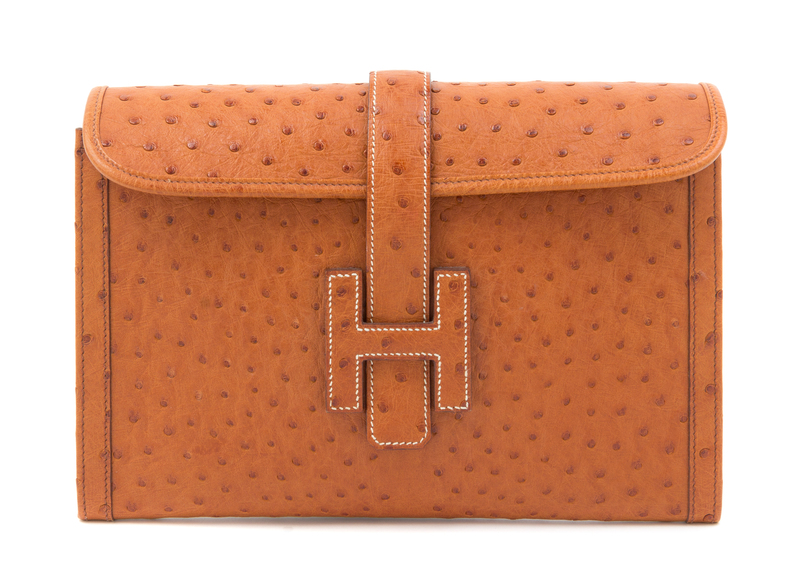An Hermes Gold Jige Elan 29 Ostrich Clutch,