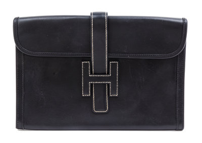 An Hermes Black Jige Elan 29 Swift Clutch,