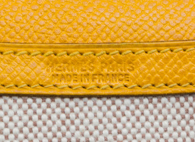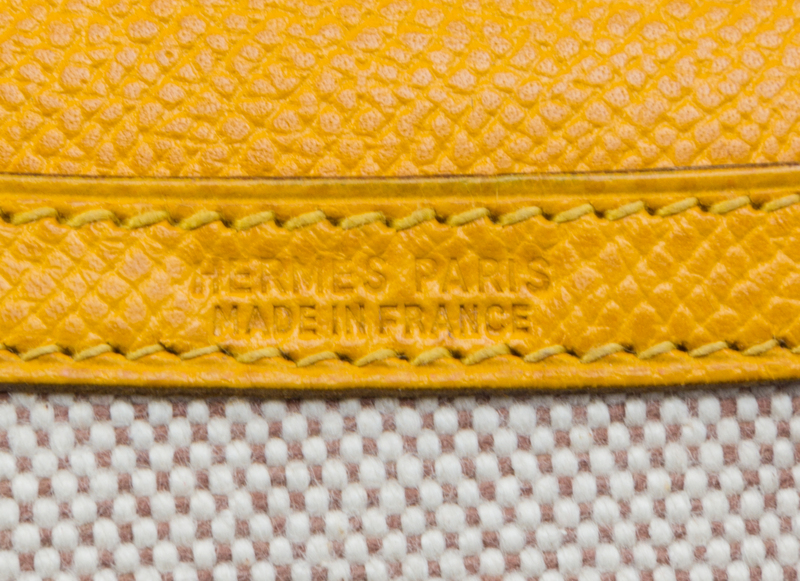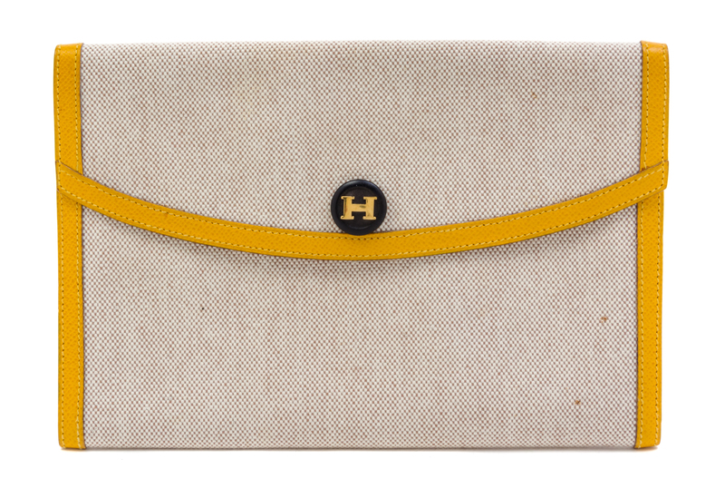 An Hermes Cream Toile and Yellow Leather Rio Clutch,