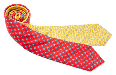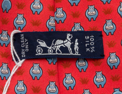 red with a rhinocerous motif and yellow with a zebra motif.Each labeled: Hermes.