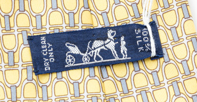 yellow with a blue stirrup motif. Together with a box.Labeled: Hermes.