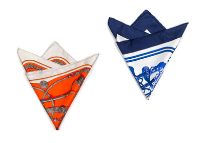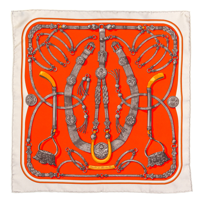 "Gaucho" pattern, designed by Caty Latham and "Brides de Gala" pattern, designed by Hugo Grygkar.Each labeled within the print: Hermes.
