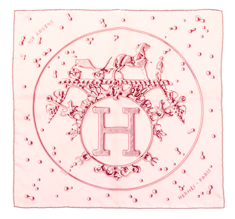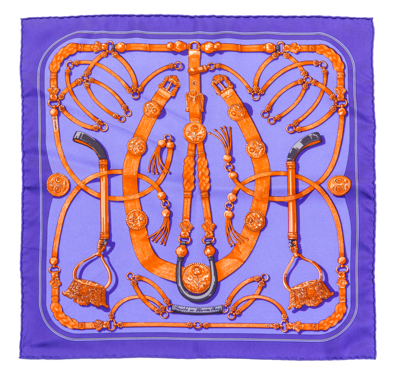 "Gaucho" pattern, designed by Caty Latham, "Litterature" pattern, designed by A.M. Cassandre and "Vif Argent" pattern, designed by Dimitri Rybaltchenko. Together with a box.Each labeled within the print: Hermes.