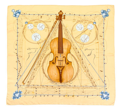 "La Musique des Spheres" pattern, designed by Zoe Pauwels. Together with a box.Labeled within the print: Hermes.