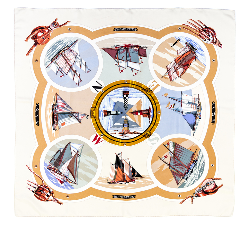 "Belles Amures" pattern, designed by Loic Dubigeon. Together with a box.Labeled within the print: Hermes.