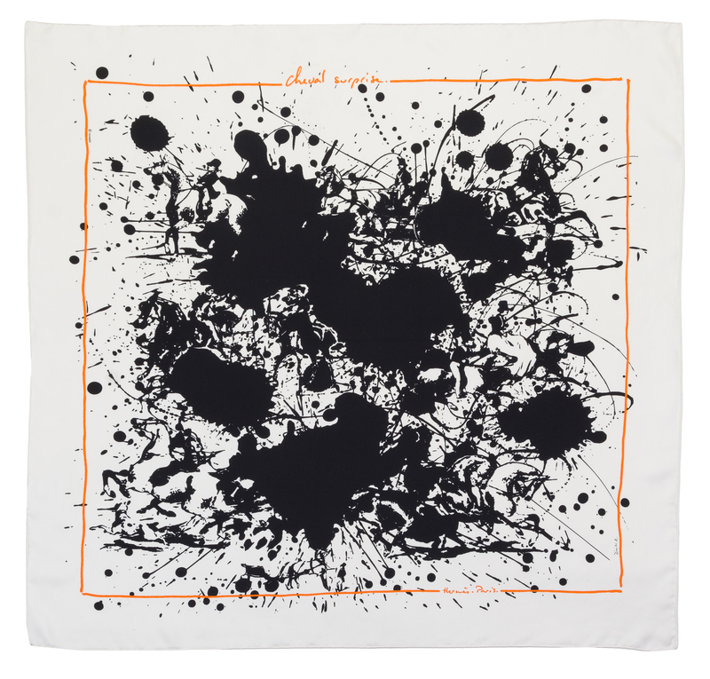 "Cheval Surprise" pattern, designed by Dimitri Rybaltchenko. Together with a box.Labeled within the print: Hermes.