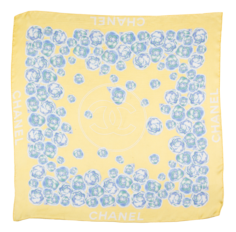 A Chanel Yellow and Blue Floral Silk Scarf,