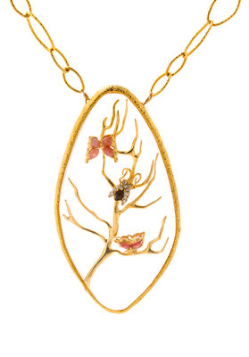 goldtone with embellished butterflies and a bug encased in the pendant.Stamped: Alexis Bittar.