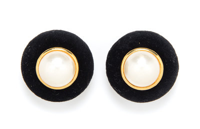 A Pair of Chanel Faux Pearl and Black Velvet Earclips,