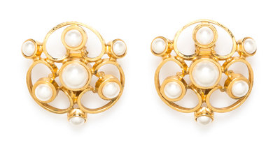 A Pair of Chanel Faux Pearl and Goldtone Earclips,