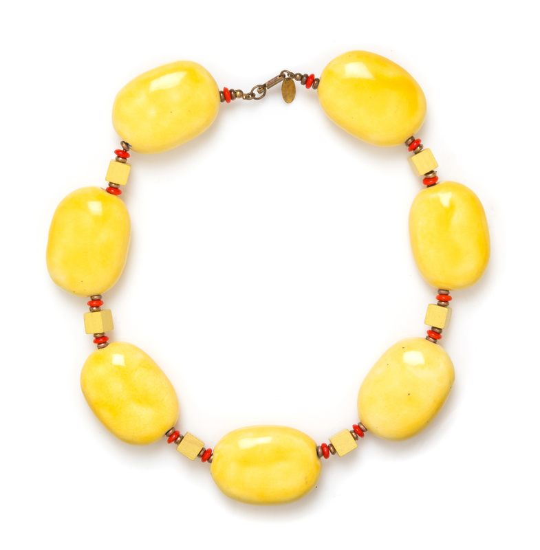 A Miriam Haskell Yellow Ceramic Bead Necklace,