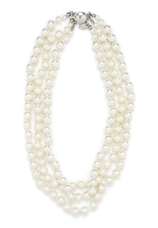with three graduated strands and a silvertone clasp.Stamped: Vivienne Westwood.