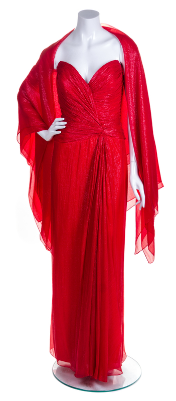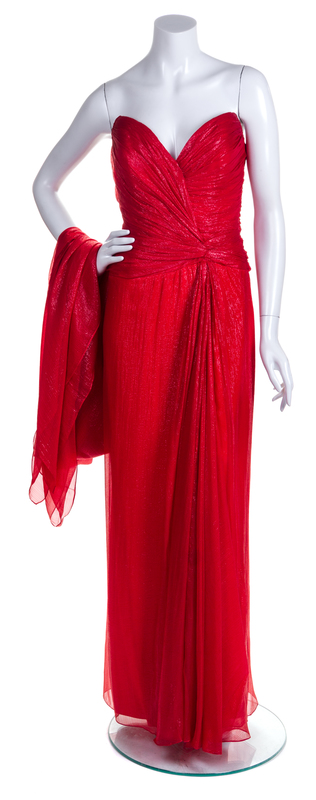 with a ruched bodice and a back zip closure, together with a matching wrap.Labeled: Bob Mackie.
