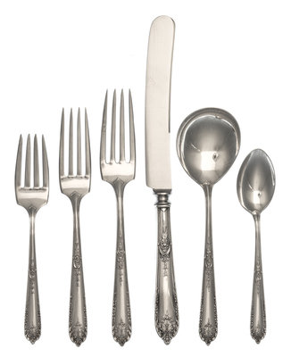 comprising:12 dinner knives12 dinner forks12 luncheon forks12 salad forks12 teaspoons12 soup spoons