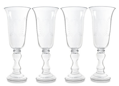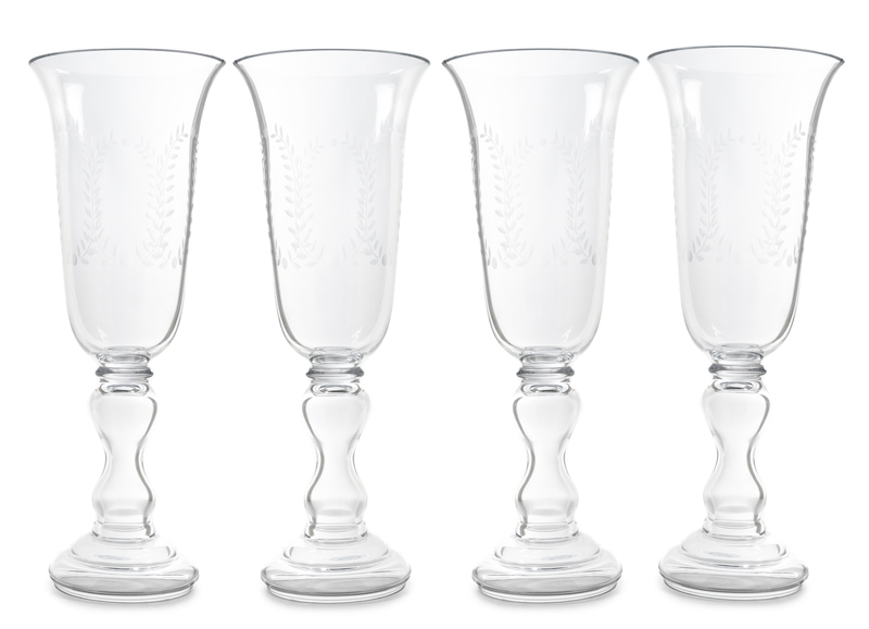 A Set of Four Etched Glass Hurricanes