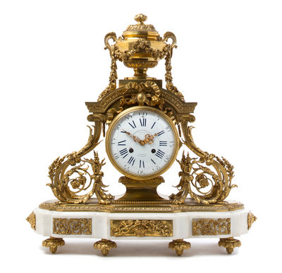 A French Gilt Bronze and Marble Mantel Clock