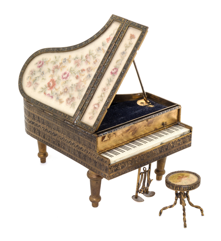 having a brass body with an acanthus leaf motif and a floral needlepoint top, together with an accompanying stool, unmarked.
