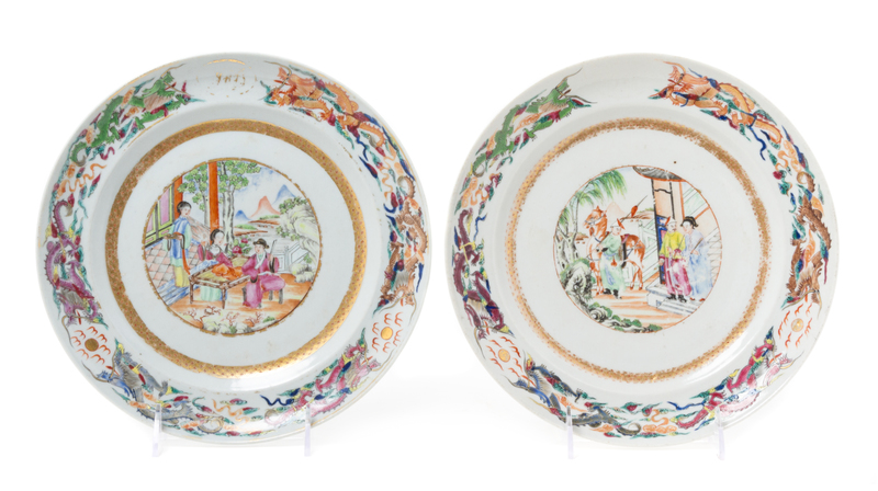 A Pair of Chinese Export Famille Rose Porcelain Plates