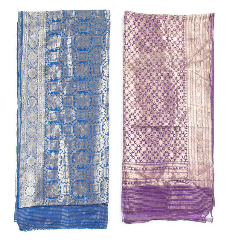 Two Indian Metallic Thread Embroidered Silk Saris
