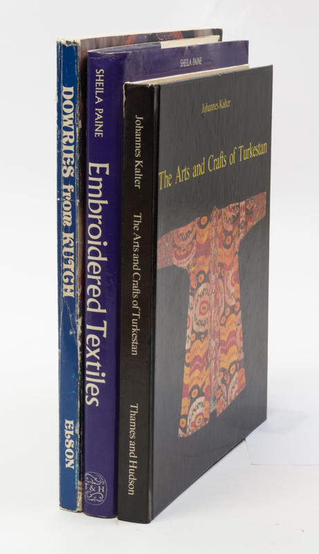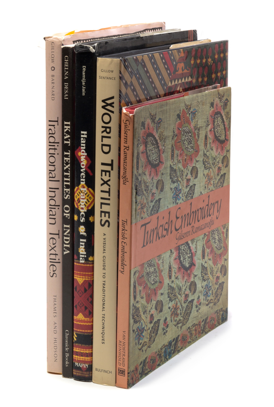 comprising Ikat Textiles of India, by Chelna Desai; Handwoven Fabrics of India, edited by Jasleen Dhamija and Jyotindra Jain; A Visual Guide to Traditional Techniques: World Textiles, by John Gillow and Bryan Sentance; Traditional Indian Textiles, by John Gillow and Nicholas Barnard; Dowries from Kutch: A Women's Folk Art Tradition in India, by Vickie C. Elson; Turkish Embroidery, by Gulseren Ramazanoglu; Embroidered Textiles: Traditional Patterns from Five Continents, by Sheila Paine; and The Arts and Crafts of Turkestan, by Johannes Kalter.