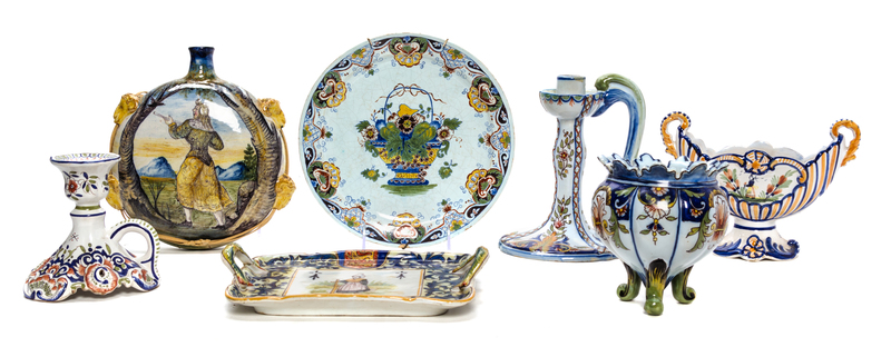 A Group of Seven Quimper Pottery Articles