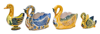 Four Quimper Pottery Swan Form Bowls