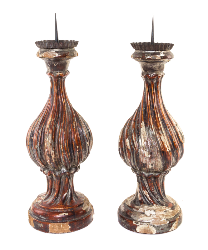 A Pair of Painted Pricket Sticks