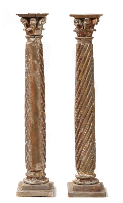 A Pair of Continental Painted and Parcel Gilt Columns