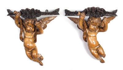 A Pair of Continental Carved Figural Wall Brackets