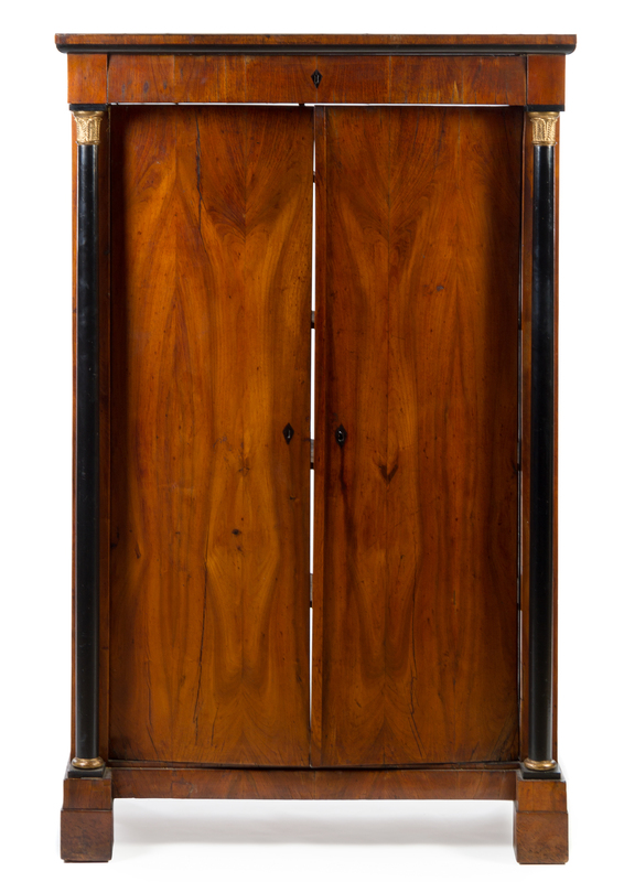 A Biedermeier Gilt Metal Mounted and Part Ebonized Cabinet