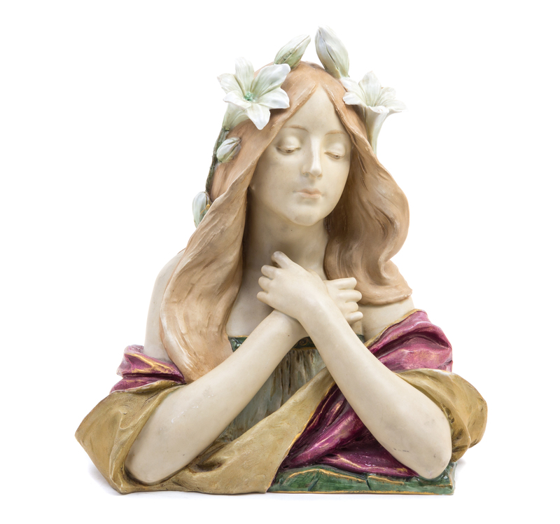 depicting a lady with lilies in her hair, the Turn Wien transfer printed mark to the underside.
