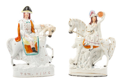 one depicting Tom King on horseback, the other depicting a gentleman on horseback.