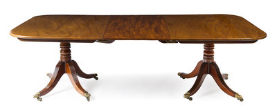 having a rectangular top with rounded corners, set on turned supports raised on four reeded legs ending in brass caps and casters.