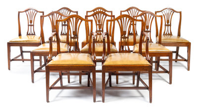 A Set of Ten Hepplewhite Style Mahogany Dining Chairs