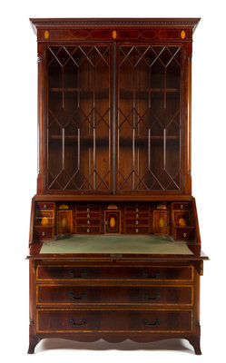 A Scottish Marquetry and Mahogany Secretary Bookcase