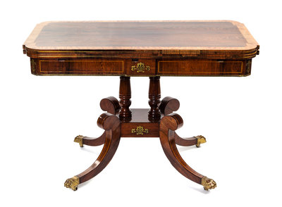A Regency Brass Inlaid Rosewood and Satinwood Sofa Table