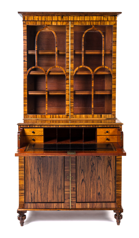 A Regency Brass-Inlaid Calamander Secretary Bookcase