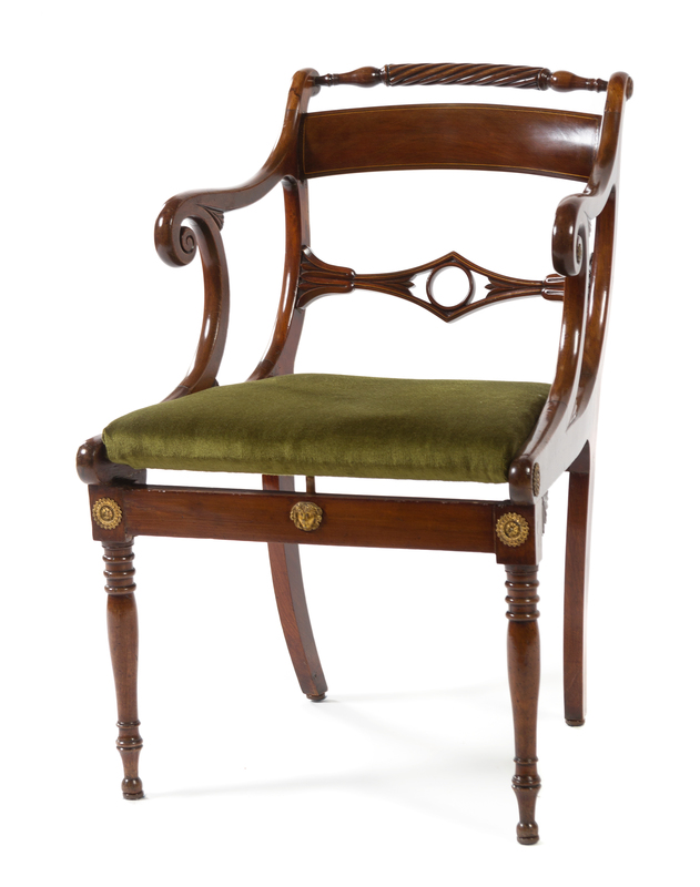 A Regency Brass Inlaid Mahogany Open Armchair