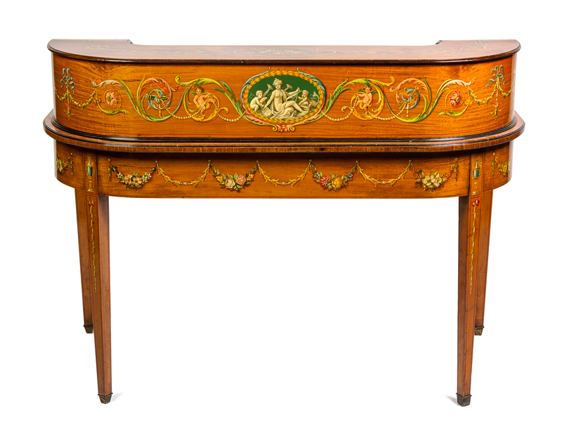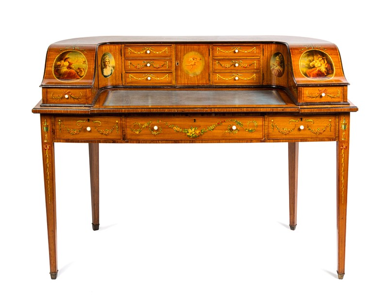 An Edwardian Painted and Inlaid Satinwood Carlton House Desk