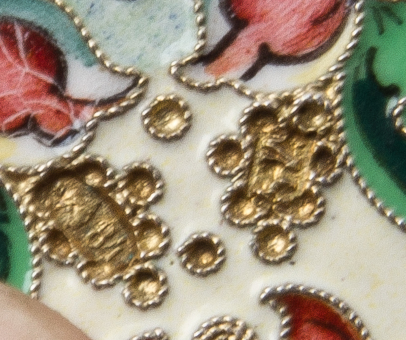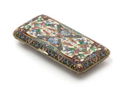 the case with polychrome floral and foliate enamels throughout, with coiled and beaded filigree.