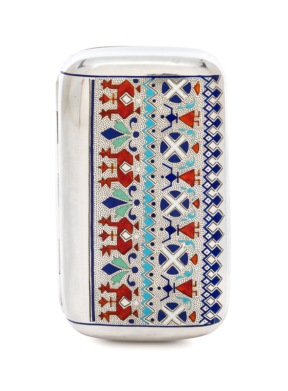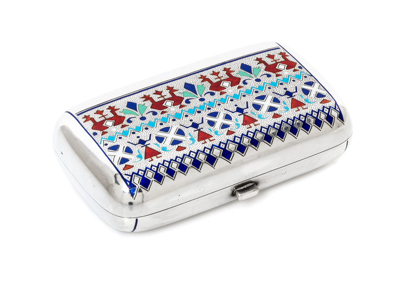 A Russian Enameled Silver Cigarette Case