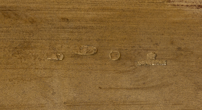 Mark of Faberge with Imperial warrant, workmaster's mark of A.J. Nevalaien, St. Petersburg
