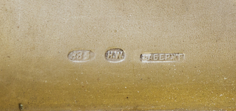 Mark of Faberge, workmaster's mark of Henrik Wigstrom, St. Petersburg, early 20th century