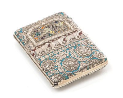 A Russian Enameled Silver Cigarette Case