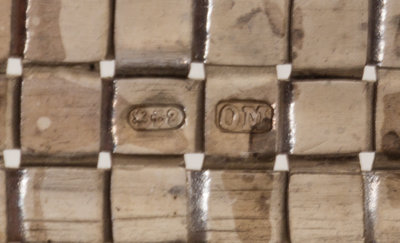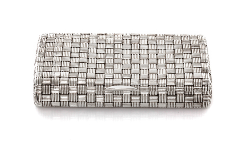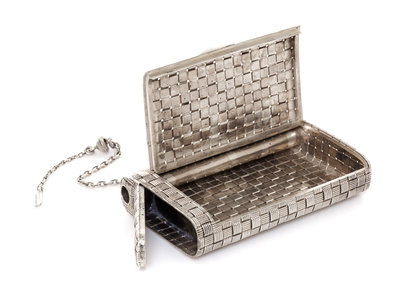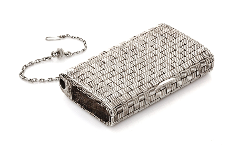 worked in a basket weave pattern with an attached chain, one side fitted with a strike-strip, together with a fitted Nicholls & Plincke box.
