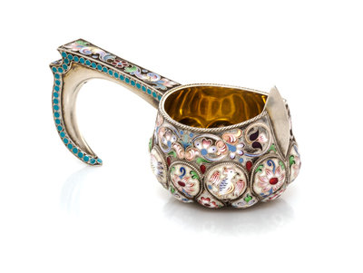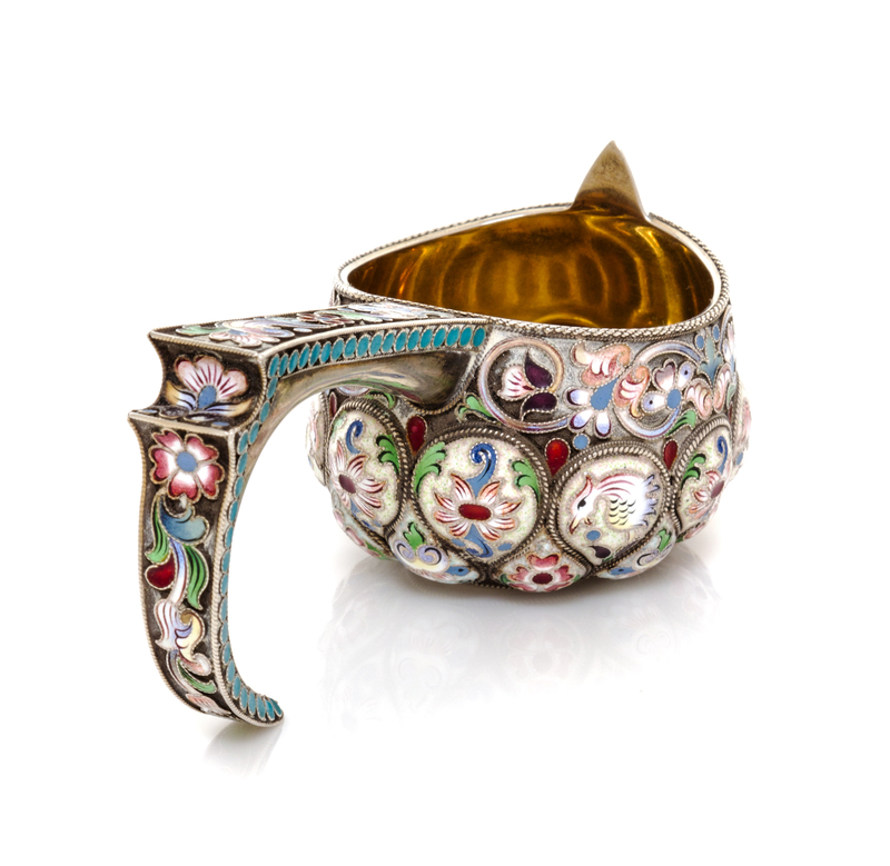 A Russian Enameled Silver Kovsh
