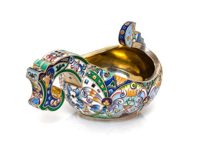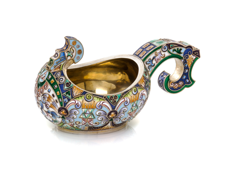 the body decorated with polychrome foliate and geometric enamels throughout.