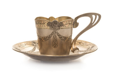 A Russian Art Nouveau Silver Cup and Saucer