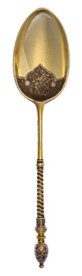 A Russian Silver-Gilt and Niello Spoon