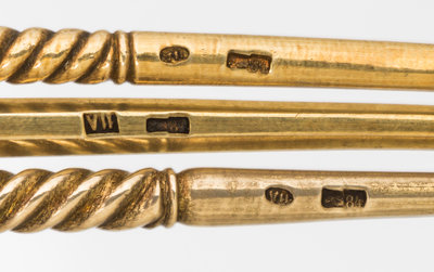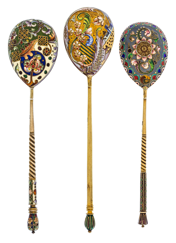 A Group of Three Russian Silver-Gilt and Enamel Spoons